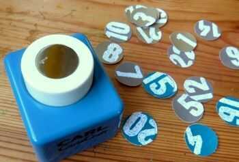 he utilizado un punzón de círculo de 3/4 de pulgada para crear números que coinciden con los colores de mi papel. Si lo desea, puede utilizar el diseño de números en círculos (descargar en el paso 2), impresión y ponche (3 esquemas de color en una sola hoja).
