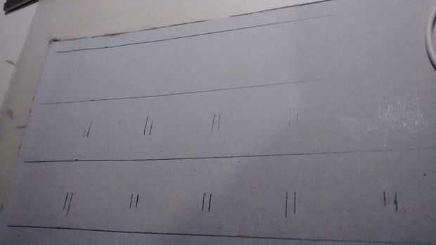 Las chicas a lo largo de las líneas de corte. Colocar las tiras en el cartón, asegúrese de que tengan un espaciado uniforme. Luego pegar en la cartulina. Hacer algunas marcas en el cartón de desconcierto puede ayudarle les pegar correctamente al primer intento.