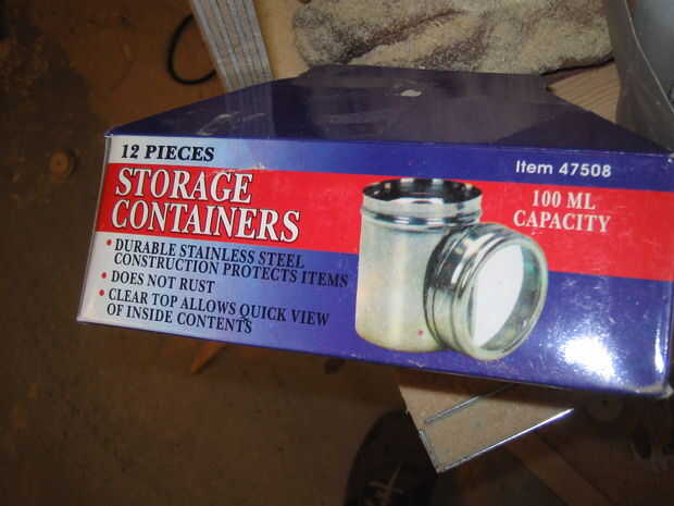 - Latas de la máquina de reloj. Puede tratar de encontrar los grandes que he utilizado en su transporte de puerto local, pero mina dijo se suspendieron, y no puedo encontrarlos en línea. Por suerte he encontrado probablemente una solución mejor aquí: Lee Valle de herramientas tienen un conjunto de 56 casos de varios tamaños para unos 15 dólares.
