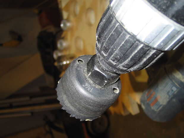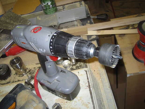 - Taladro con 1 3/4 pulgada agujero vio. (Esto sucedió para mi perfecto de latas, si utilizas algunas de las opciones a continuación, necesitará ajustar el tamaño del agujero por consiguiente.)