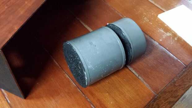 -Zaag de buis de pvc en 3 gelijke delen. Zorg er voor dat deze en de kast desbalancear en er en totaal ongeveer 8 cm ruimte voor de overblijft de servomotoren.