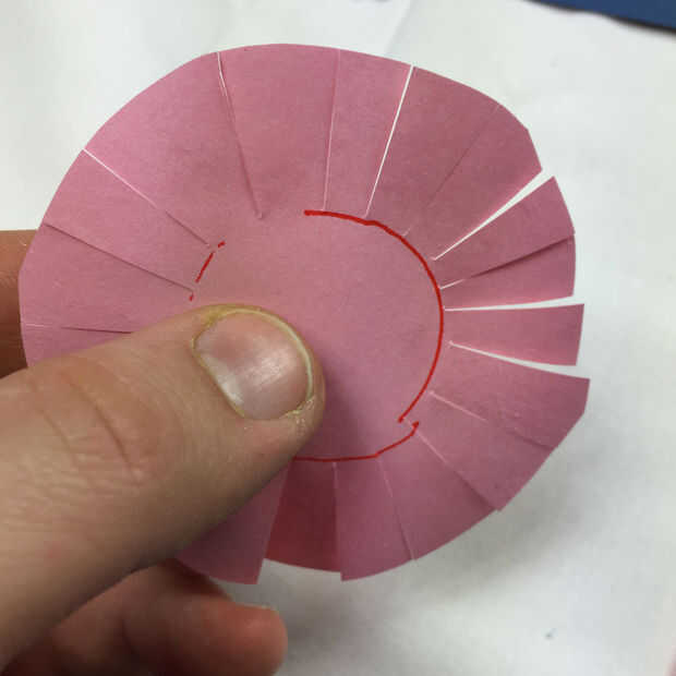 Hacer cortes alrededor del borde hasta la línea (imagen 1:4)