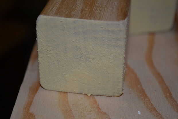 Con el corte de bloques usar la lija para quitar las fresas. Si tu post ha redondeado los bordes utilizan el papel de lija también redondear los bordes y esquinas de los cortes. Use la masilla para madera si los cortes son con textura diferente a las superficies sin cortar. Si no se están pintando los bloques no utilizan la masilla para madera.