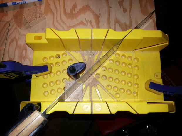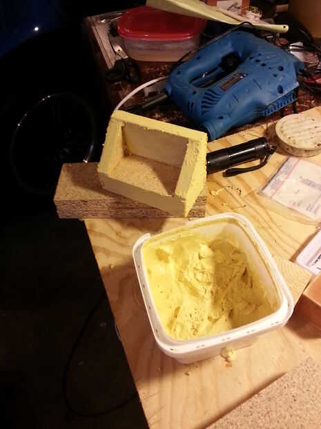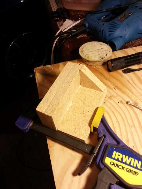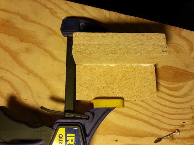 Otra vez, si usted está planeando en cebado, este es el momento de hacerlo. Una vez seca la imprimación comenzar armar pegando la parte posteriora en lugar. Cuando la espalda está completamente pegue los lados en el lugar. Los lados son difíciles de sujetar pero si Coloque la abrazadera sobre la cara angulada y la esquina trasera de la parte inferior del pedazo lo deben presionar la pieza contra la parte inferior y la parte posterior.