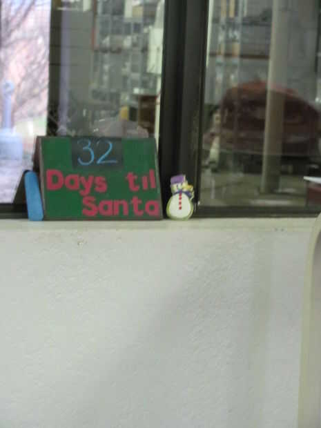 Mina puse en la repisa de la ventana en el trabajo para animar el lugar para Navidad. Mi hijo pasa mucho tiempo en el trabajo conmigo, y me siento culpable lo pegan en una triste oficina en Navidad. Hacemos manualidades y cositas cuando tenga tiempo para hacerlo mejor, así que esto es una gran decoración pequeño que no ocupa demasiado espacio.