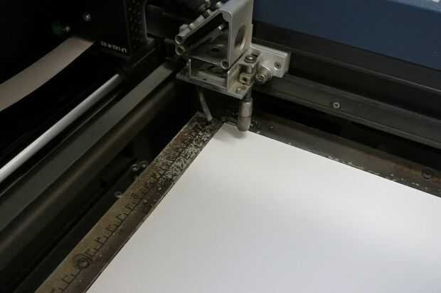 Una vez haya encontrado un ajuste bueno, carga el archivo .pdf o. AI adjunto al ordenador y sale listo para imprimir. Asegúrese de que su papel stock de la tarjeta está llena para arriba y plana dentro de la cortadora láser. Ayuda a ejecutar alguna cinta a lo largo de la parte inferior y derecha bordes del papel para evitar la inclinación durante el proceso de grabado. Asegúrese de que tienes las cosas de fan/ventilación y comenzar la impresión. Tiempo de espera para mí fue aproximadamente 11 minutos.