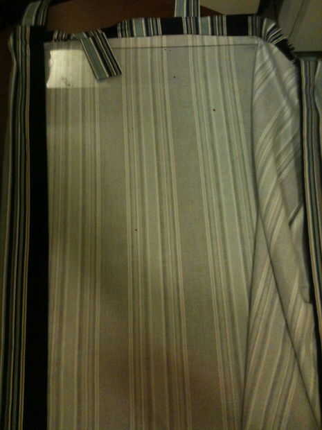 La cortina que estoy usando tiene lazos en la parte superior donde la barra de cortina normalmente pasaría por. Coloqué la hoja de vidrio contra la parte superior izquierda de la hoja. Yo doble la cortina en el frente cerca de 2 pulgadas para una frontera. Al plegar la cortina desde el otro lado. Con mi cristal más alto que el más amplio la cortina puede envolver completamente alrededor del vidrio. Para hacer más fácil deslizar el cristal y salir luego cosieron los dos pliegues. En lugar de cortar la hoja extra sólo doblé lo para arriba para que la parte de atrás del calendario tendrá tela extra y amortiguar el vidrio mejor.
