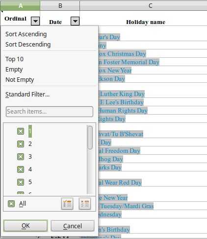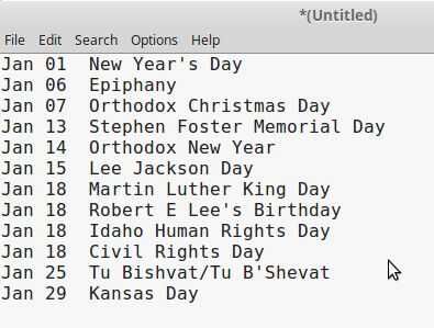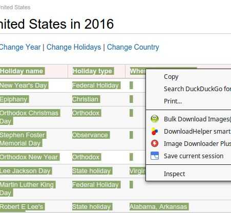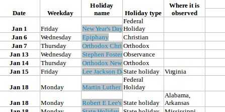 los nombres de vacaciones y pegar en un editor de texto.