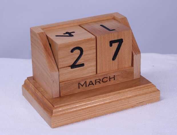 Mi hijo vino a mí con una foto que encontró en línea de un calendario de escritorio hecho de bloques de madera. Era originalmente de pinterest o algún sitio similar. Tomé que idea, había retocado el diseño y construyó esta de madera maciza de cerezo.