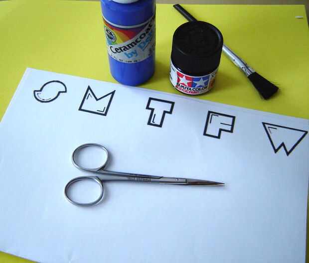 Quería enseñar a mi hija de 6 años acerca de los días de la semana en una divertida forma. Así surgió la Idea de un calendario el she puede establecer en la fecha correcta por las mañanas y que donde la puedo calendario proviene.Paso 1: Dibujos de la
