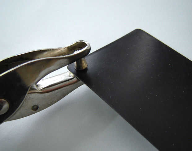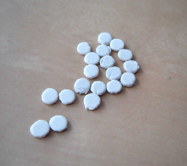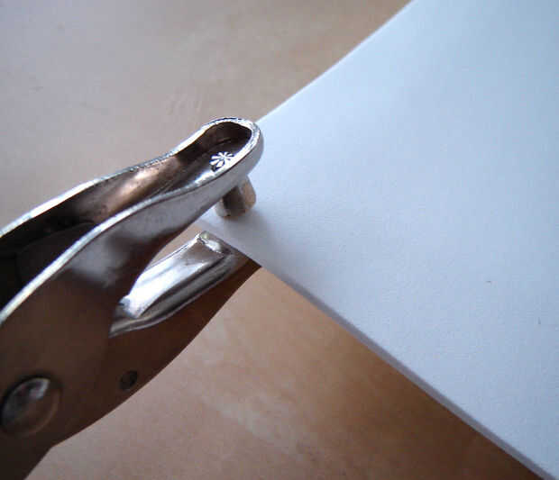 • Con el mismo sacador de agujero, perfora hacia fuera de los círculos de treinta y uno de una hoja de imán y había pegado a los puntos de espuma blanca.
