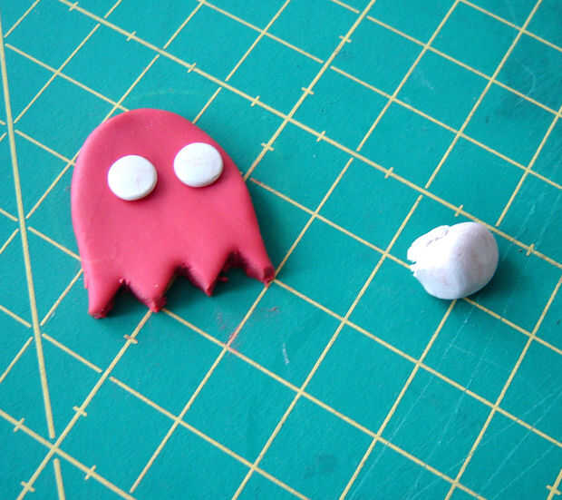 • El rodillo un par de bolitas de arcilla blanca y colóquelo en la cara de fantasma (fantasmas azul oscuros no necesitan estos).