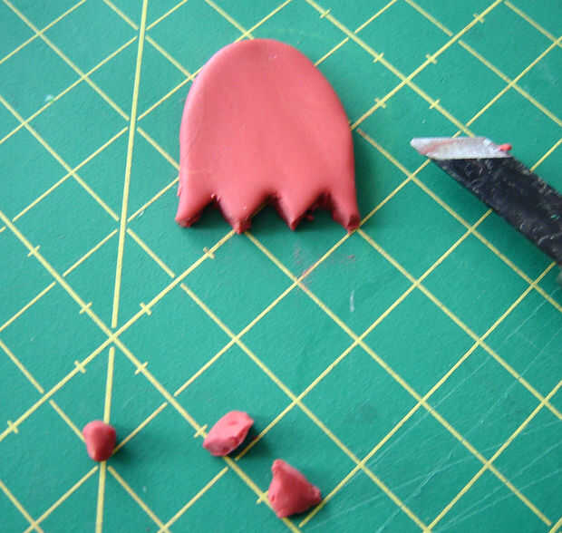 • Hacer estos chicos rodando fino un pedazo de arcilla de la manera apropiada de color (o mezcla de colores para obtener la sombra adecuada) a unos 3-4mm de espesor.