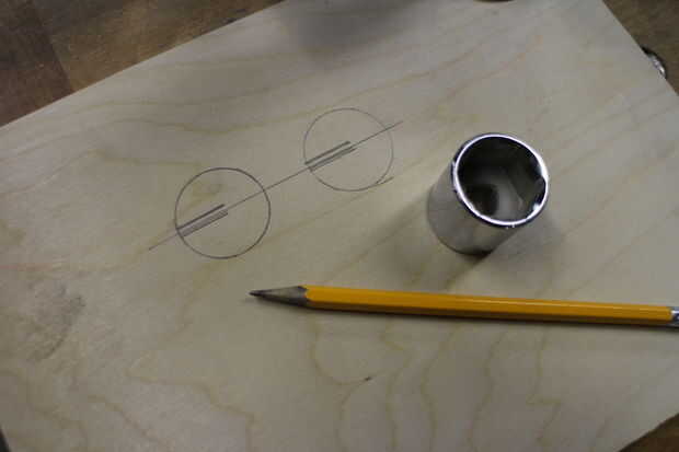 Para colgar la pieza en la pared, decidí hacer algunos orificios rápidos. Empecé con el disco en forma de recortes en madera contrachapada de 1/8", cortando en la sierra. Estos dan el tornillo en la pared algo que conservar.