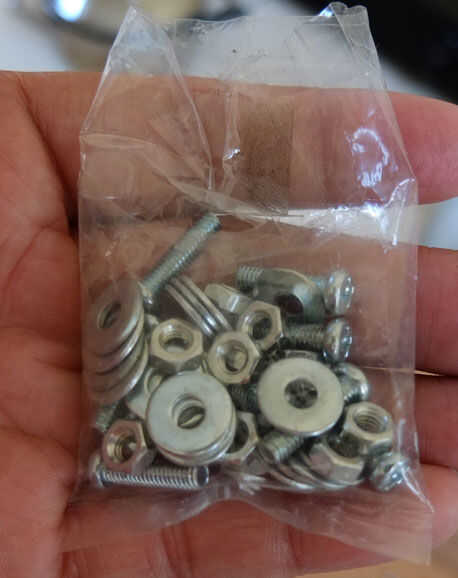 Material: 7 pares de tuerca, perno y aro 4mm x10mm, cinta textil
