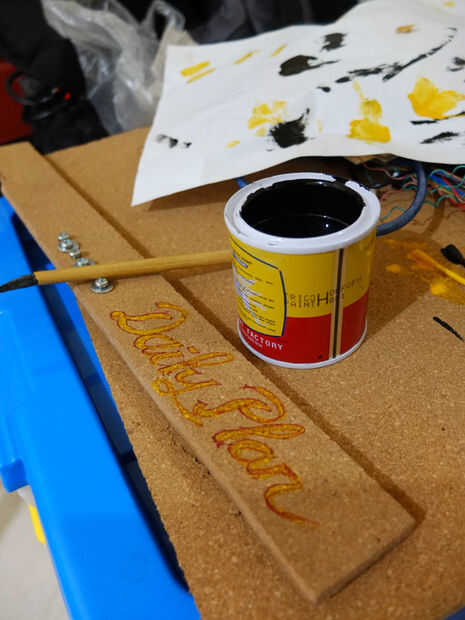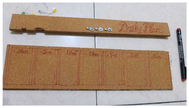 Parte de la Asamblea dos de pizarra de corcho y pegamento junto con cinta textil