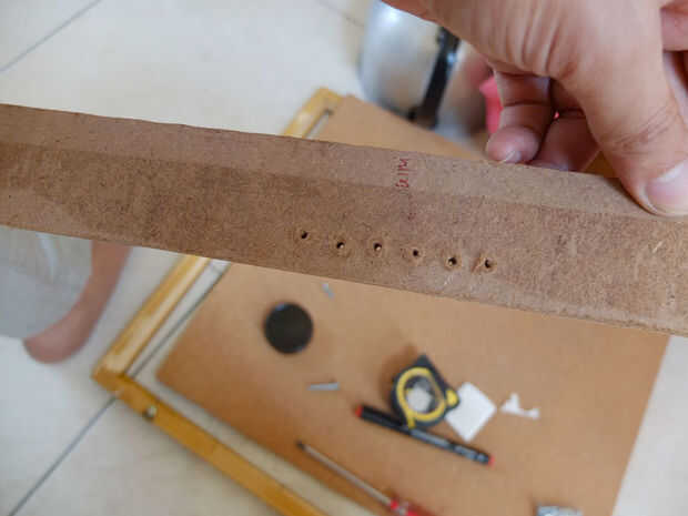Lo mejor hacer un agujero con taladro de uso, pero no es necesario que hemos hecho por el tornillo y empuje con destornillador.