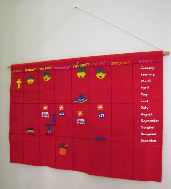 un calendario Visual es diferente a un calendario que muestra los días del mes. Tiene fotos para mostrar visualmente las cosas "Que hacer" para ayudar a comunicarse con las personas con disminución de destrezas o habilidades cognitivas. Clases d