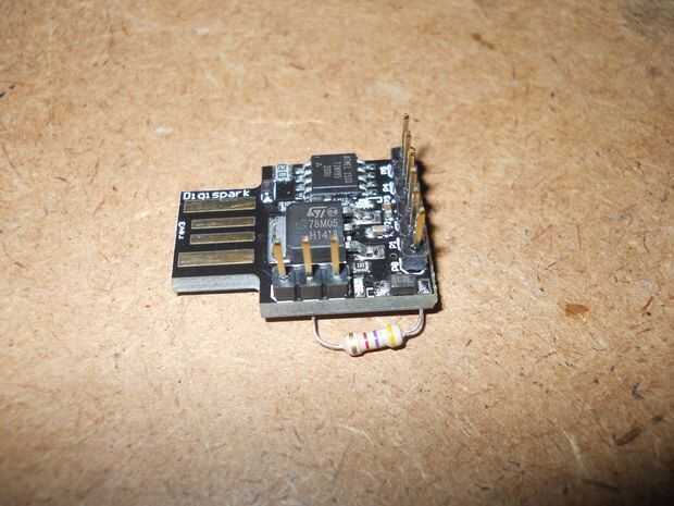 • Resistencia de 4,7 k la soldadura entre p0 y + 5v pin en el tablero de digispark.