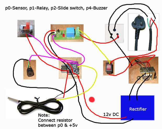 Nota: Usar mismo calibre de alambre para el relé como alambre del calentador porque atrae a más energía.