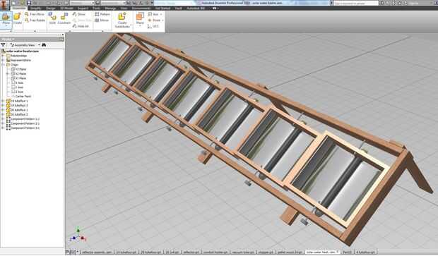 Montar los tubos de vacío solares usé pinzas de gran tamaño conducto/tubo perforadas en un lado de un cuadro de madera de caja abierta con cuatro 18" piezas de madera de desecho que tenía puesta alrededor. Esto me dio la altura relativa del tubo solar con referencia a la carcasa de la caja.