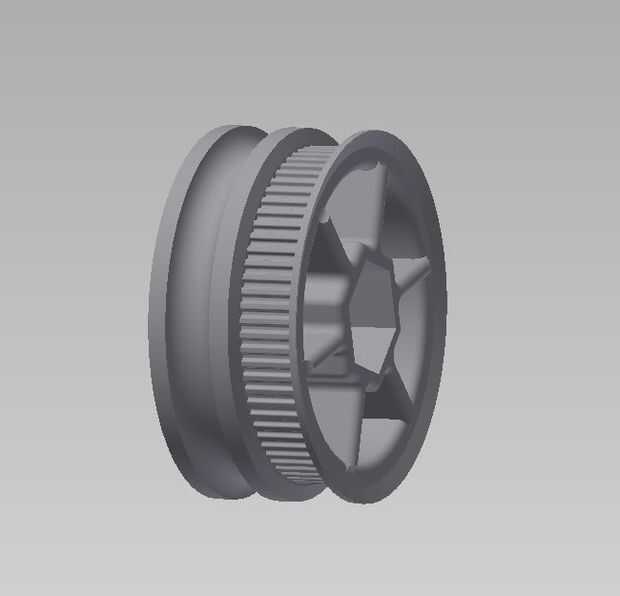 Para sincronizar los espejos, que diseñé una polea de correa redonda doble que 3d imprimir usando una impresora de Formlabs tener acceso a en el trabajo. Las poleas utilizan el patrón hexagonal del perno en la cabeza como una ranura del tipo y es muy seguro una vez ajustaron en su lugar. La polea final tiene una polea de correa de sincronización de mxl en la sección externa para conectar con un motor paso a paso y una polea de correa redonda para conectar a las otras poleas de correa redonda.