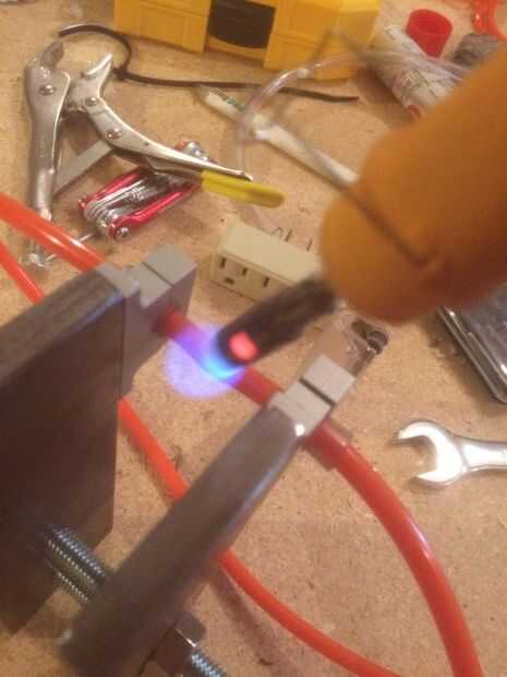 Opté por correa redonda porque su barato y podría poleas impresión 3d gratis en el trabajo (dentro de razón). Compré 1/4" correa en forma interminable. Para el cinturón de empalme hice un jig pequeño que consta de dos placas con los titulares de eje atornillados en ellos. Las placas tenían dos pernos pasando a través de ellos, y las tuercas estén apretadas para aplicar presión a los dos extremos cortados de la correa. una vez que los extremos de la correa se sujetan junto con un poco de presión les derrite juntos lentamente con una pequeña antorcha y utiliza los dedos para presionar de la correa alrededor del diámetro para evitar que se deforme.