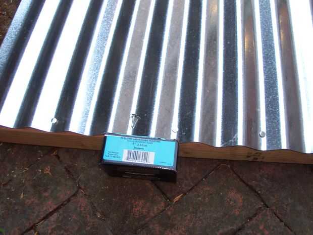 Poner la bandeja en el armazón, revestimiento para mejor ajuste centrado. Opcionalmente poner una tira de sellador de silicona en la parte superior de la madera donde interconectará con el estaño para mejor sello del panel de corrientes de aire. Ajuste la espuma acanalada cosita entre el estaño y la madera en ambos extremos acanalados, usted probablemente tendrá que estirar para que quepa correctamente. Con los clavos de techar o algunos tornillos cortos, seguro una de las esquinas, comprobar la alineación y la espuma (le gusta moverse Si no tienes el panel de), luego fije la diagonal enfrente de esquina y de extremo de la tira de espuma. Uñas las otras esquinas para asegurar el estaño y la espuma y luego clavar cada valle en la bandeja de corrugado a partir en el medio y asegurar el medio valle más cada vez. A lo largo de los lados del plano y largo de uñas la lata cada 6" o también a partir de la media y dividiendo las distancias hasta llegan a unos 6". Esto es para evitar que cualquier decantación se propagan a lo largo de una esquina donde se convierte en un gran vacío. Otra vez, asegúrese de que el marco esté sobre una superficie plana para ello, clavado mientras no plana le dará un marco torcido (mina salió con una torcedura menor).