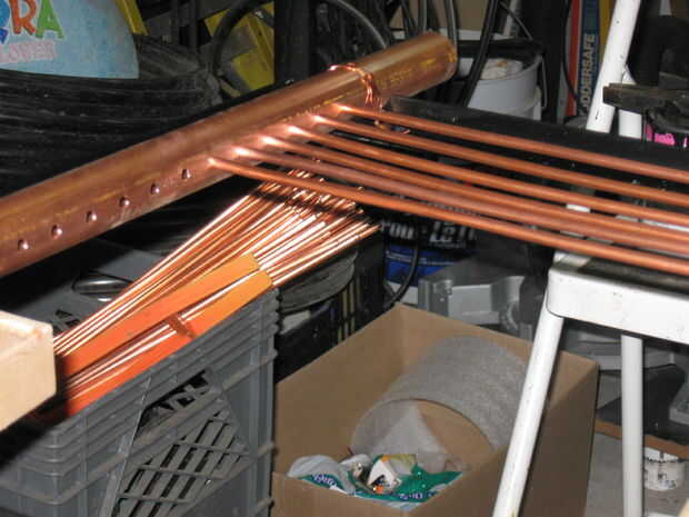 Corte en los tubos de 1/4" para que sean unos 3/4" ya entonces la distancia entre los tubos de 1 1/4. Esto asegurará, una vez Inserte los tubos pequeños de 1/4 en los orificios de los tubos múltiples, que hay un poco más de 1/4" superior a dentro.