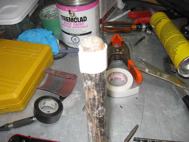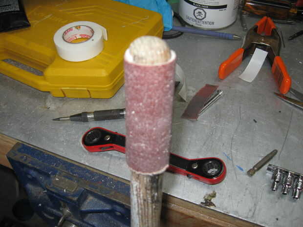 De arena dentro de los tubos de 14" 1. agregado algunos lija de papel con cinta de doble cara en un palo de escoba y el interior con los agujeros de la arena. Esto se librará de la metralla de taladro y ayudará a la delgada para hacer un enlace mejor.