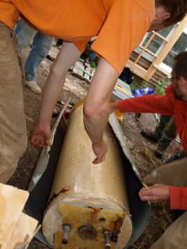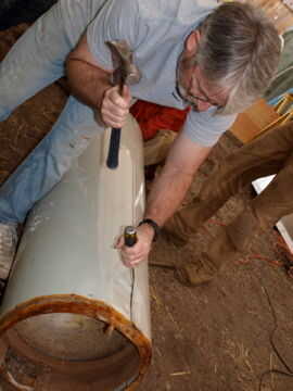 Tomar de la parte superior e inferior de la carcasa, luego use un destornillador o palanca barra para abrir el engarzado donde la carcasa se unieron. Esto se puede también hacer usando un molino equipado con una rueda de corte, o una sierra de sable y una hoja muy fina. Si estos métodos tenga cuidado de no cortar demasiado profundo como el interior del tanque es aproximadamente una pulgada por debajo de la carcasa.