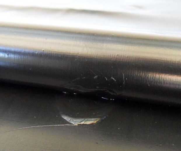 Es mejor pegar la parte superior del colchón una tubería rugosa por medio de la cinta y luego rodar hasta llega a la mitad. De esta manera puede desenrollar parte superior centímetro por centímetro como pegue hacia la parte exterior. Como el pegamento del PVC es un secado extremadamente rápido, debería funcionar solamente en sobre una tira de 5cm desde el interior. Luego desenrolla la parte superior, junte las dos partes y continuar con la siguiente tira de 5cm. Antes de usted solicitante el pegamento, limpie el área con un trapo de bencina para limpiar de polvo y aceite. Luego de cubrir ambos lados con una pequeña cantidad de pegamento, espere hasta que casi se seca en la superficie y les pegan. Presionan muy apretado para hacer un buen contacto. No es importante presionarlos durante mucho tiempo como el pegamento funcionará inmediatamente. Pero trate de no mover demasiado para las próximas horas después de pegar. Y por supuesto no llenarlo con agua durante al menos 24 horas!