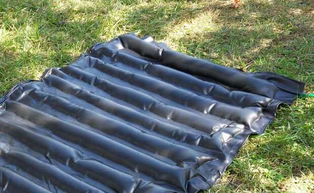 La S-forma: Esta forma hace que un tubo largo dentro del colchón donde el agua puede fluir desde la entrada a la salida. La ventaja de este diseño es el largo camino que el agua tiene que fluir para pasar por el colchón. Para ajustar una pequeña presión a la entrada puede dar una gran diferencia de temperatura entre la salida y entrada. Por otro lado, la manera larga proporciona mucha resistencia contra el flujo de agua y una pequeña bomba de agua solar conducido no sería suficiente para realmente pasar agua. Pero se puede trabajar con él en una base de intervalo, que significa: relleno con fría agua de la manguera y deje que se reposar 20min, luego intercambiar mediante la aplicación de agua fría de la manguera. De esta manera podría llenar su piscina en un tiempo con agua tibia. Otra desventaja es la relativamente alta necesitas para el pegamento. Necesita hasta 200ml para un colchón.