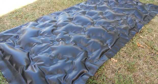 La forma del punto: Esta forma sólo palillos puntos de la capa superior a la capa más baja. Sabes este tipo de forma de un montón de colchones de aire. La ventaja es la baja cantidad de pegamento que necesita y la baja resistencia para el flujo de agua. Un colchón con esta forma se puede instalar una bomba de agua solar conducido para una calefacción continuamente dispositivo. Hay bombas de agua barato que trabajan con 12V en sólo unos pocos cientos de mA. Estos se pueden controlar con un módulo solar 12V barato lo que le permite calentar una bañera de agua durante un día soleado de otoño.