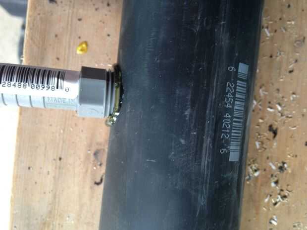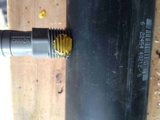 Una vez que ha aprovechado y roscado todos los agujeros envuelven la conexión poly en teflon cinta añadir unas gotas de gorila encolar y rosca en el tubo de 2 pulgadas. Ten mucho cuidado ya que no hay no un montón de hilos tienen esto en su lugar. Suficiente para hacer el trabajo pero sin extra. Usé pegamento de construcción de PL en las conexiones para la fuerza agregada y para hacer un sello firme.