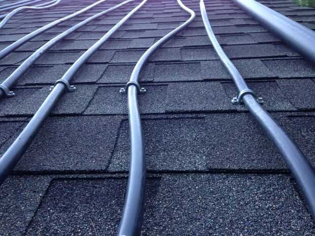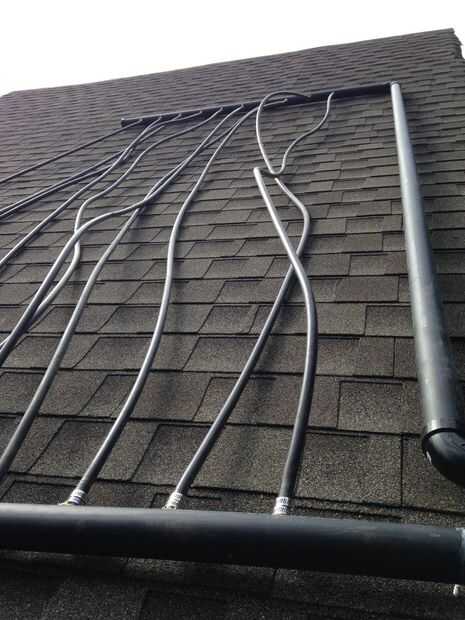 Conectar el resto de las tuberías, apriete todas las abrazaderas de manguera y atornillar la polypipe con abrazaderas y techo de acero. También usé suspensión de aluminio para garantizar las alimentaciones principales a la azotea. Hay un grado de 1 a 2 (C) 2 a 4 (F) diferencia las fuentes a y desde el techo. Suficiente para hacer una diferencia. Traído mi piscina de 75 a 80 en el 1 º fin de semana.