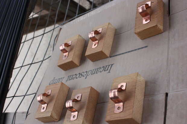 , Fotos son vale más que 1000 palabras, así que espero que he incluido bastantes. Los bloques de madera y soportes de pared de cobre se utilizan para suspender la bobina de cobre en el centro de la caja. En retrospectiva habría tamaño los bloques para asegurar dos piezas de cobre por bloque.