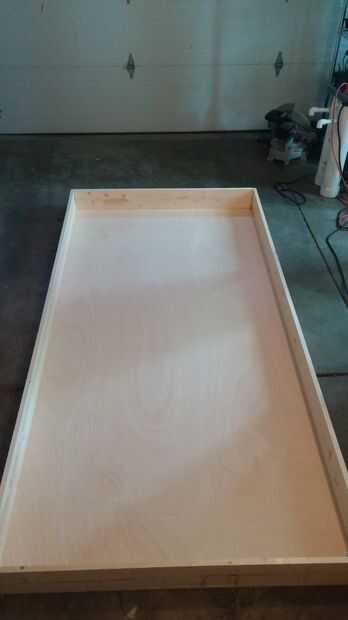 Comenzamos con una hoja de madera contrachapada de 11/32", el tamaño estándar 4' x 8'. Luego hicimos un caja marco de tres 1 "x 6" x 8' tablones. Los bordes exteriores de la carcasa de la caja se ajusta exactamente a los bordes exteriores de la madera contrachapada. Fijar la madera en el marco, alineados los bordes y había atornillada al chasis con tornillos para madera de 1 1/4". El costo total para este paso fue aproximadamente $38.