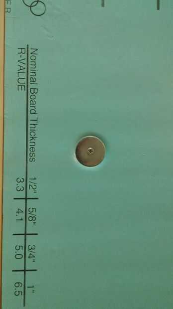Finalmente, utilizamos 1 1/4" tornillos para madera con arandelas planas de 1 1/4" para garantizar la poli-iso a la madera contrachapada del forro. 3 en la parte inferior, el medio y la parte superior. Costo para este paso fue total: $18.