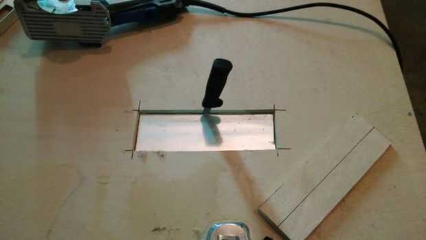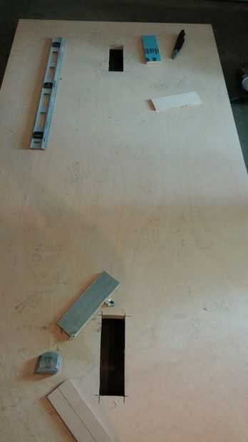 Se utilizó la Ultrasaw para cortar los orificios de ventilación. Como el Dremel no podía cortar profundamente bastante para penetrar a través de la madera y el aislamiento, terminamos cortando el resto del camino a través del aislamiento con un cuchillo.
