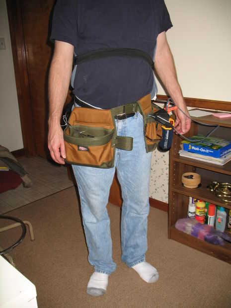 fuente de alimentación portátil usando un cinturón de herramientas. Se advirtió que esto sólo es
