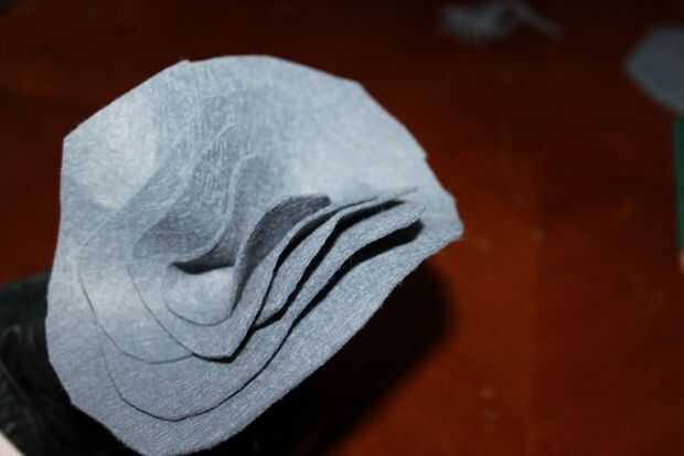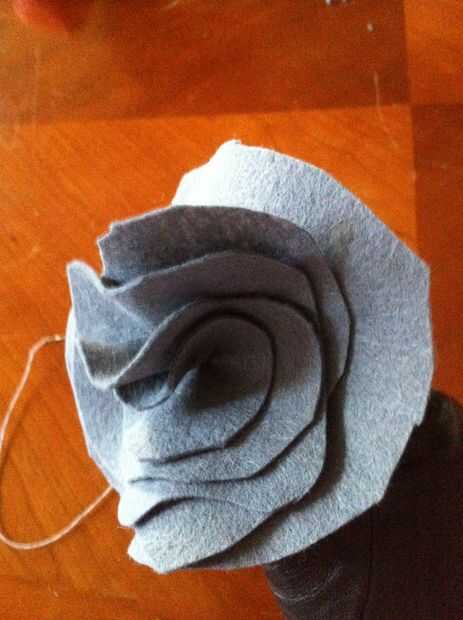 Desde la parte inferior doblar la flor por la mitad y hacer otra puntada. Tirando muy hace que las reúne y las formas una hermosa flor.