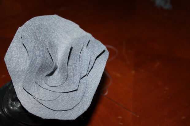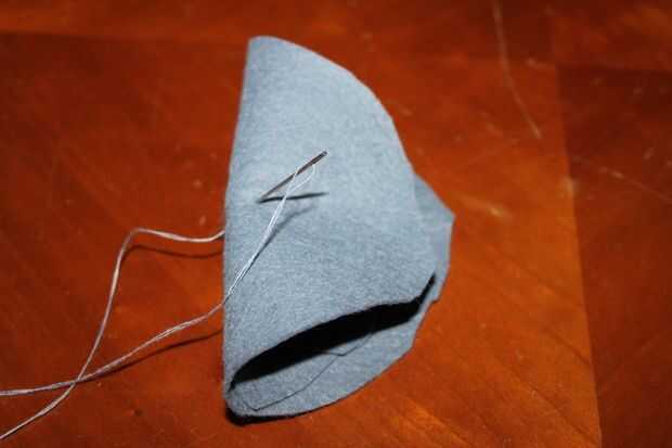 Doble su flor por la mitad con el reunir y hacer otra puntada derecha tirando muy apretado. (foto 6) Reloj hacia fuera! No rompa el hilo.