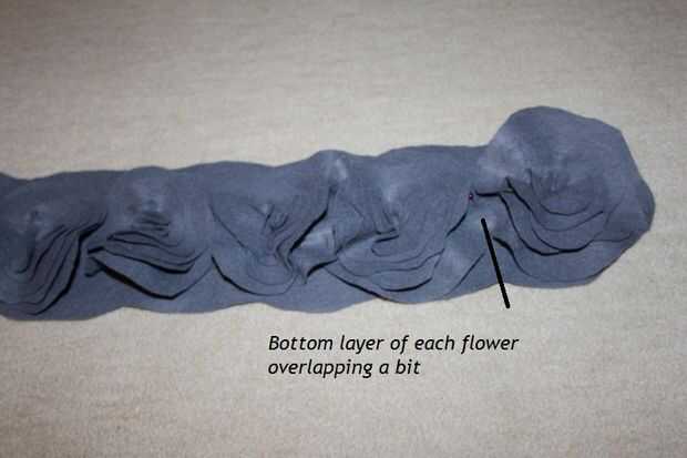 Una vez ajustado todas las 13 flores donde como ellos prender sólo la capa inferior de cada flor para la bufanda.