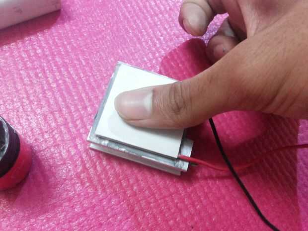 Utilizando grasa térmica Conecte el módulo peltier para el disipador de calor. Luego limpie el exceso de grasa.