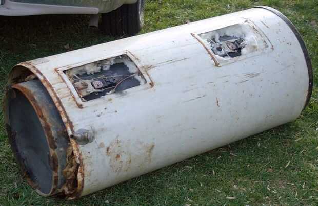 usando una amoladora o lata unas tijeras para cortar la capa exterior y raspar la espuma expandida desde el tanque interno