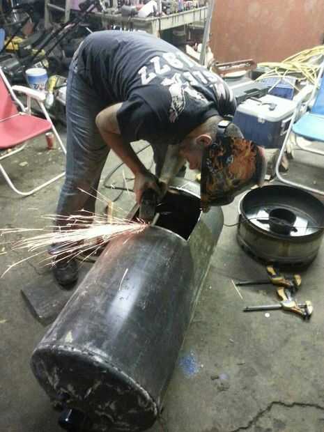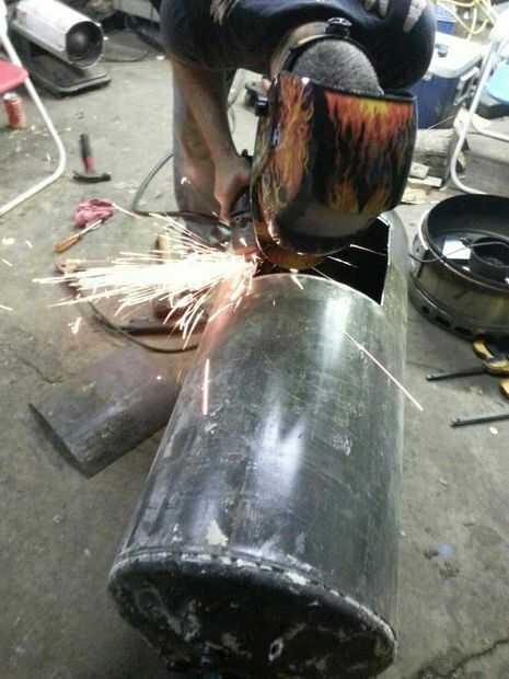 una vez se corta la puerta necesita un respaldo para que al cerrar la puerta detiene al ras con el tanque. piezas de chatarra de acero soldado con autógena en el interior de la puerta hace el truco
