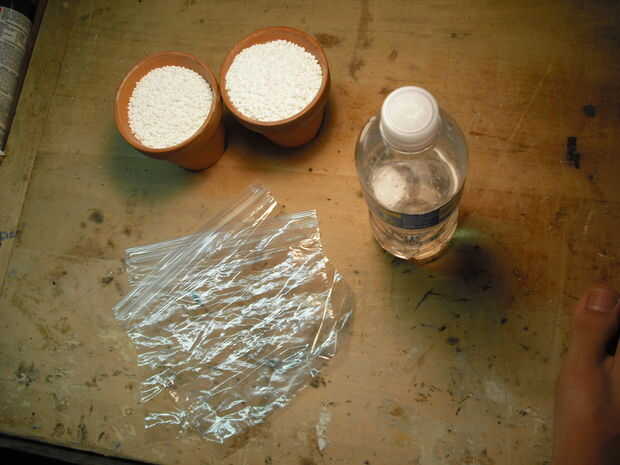 Sólo hay 4 cosas necesarias para hacer el handwarmer, todos ellos son muy fáciles de adquirir, si ya no tienes. * una bolsa de ziploc grandes * una bolsa de ziploc más pequeño * algunos pellets de cloruro de calcio hielo fundidor * Agua