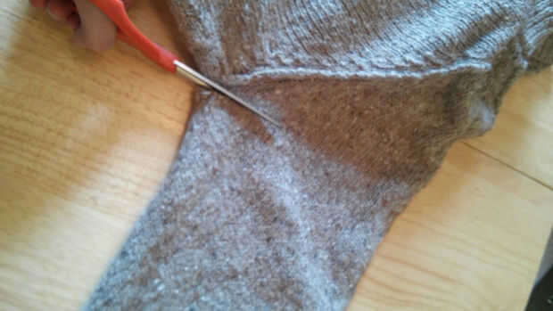 Esta era la parte más intimidante del proyecto. Puesto que el suéter es un tejido, puede venir deshecho fácilmente.