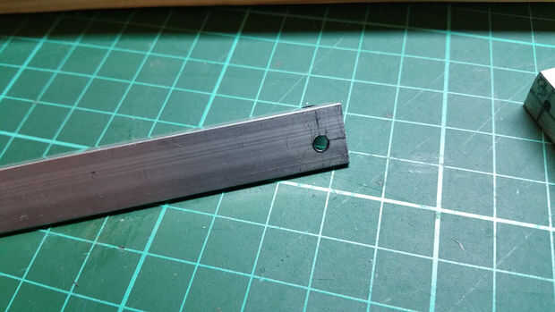 - Mezclar algunos epoxy y finalmente recubrir el interior de las piezas base (25 x 25 x 1,4 mm aluminio igual del ángulo). Sólo puse pegamento en uno del interior de los bordes, el área que tenía las esquinas cortadas.